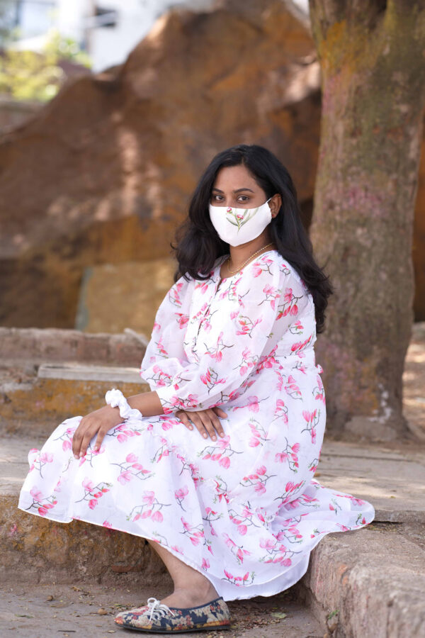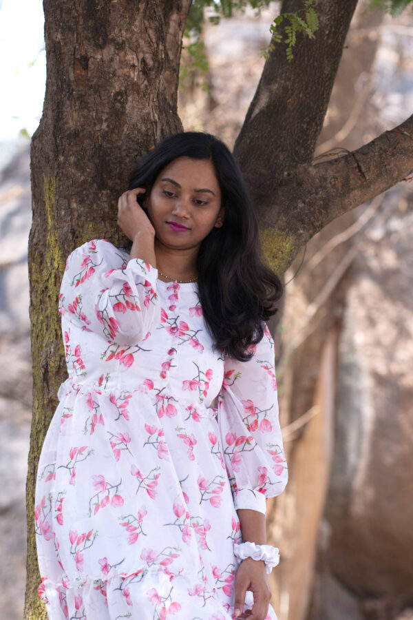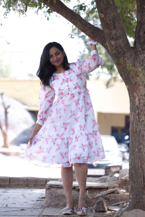 Womens Designer Dress pattern, stitched to comfort and fit.The material used is fine quality chiffon fabric.