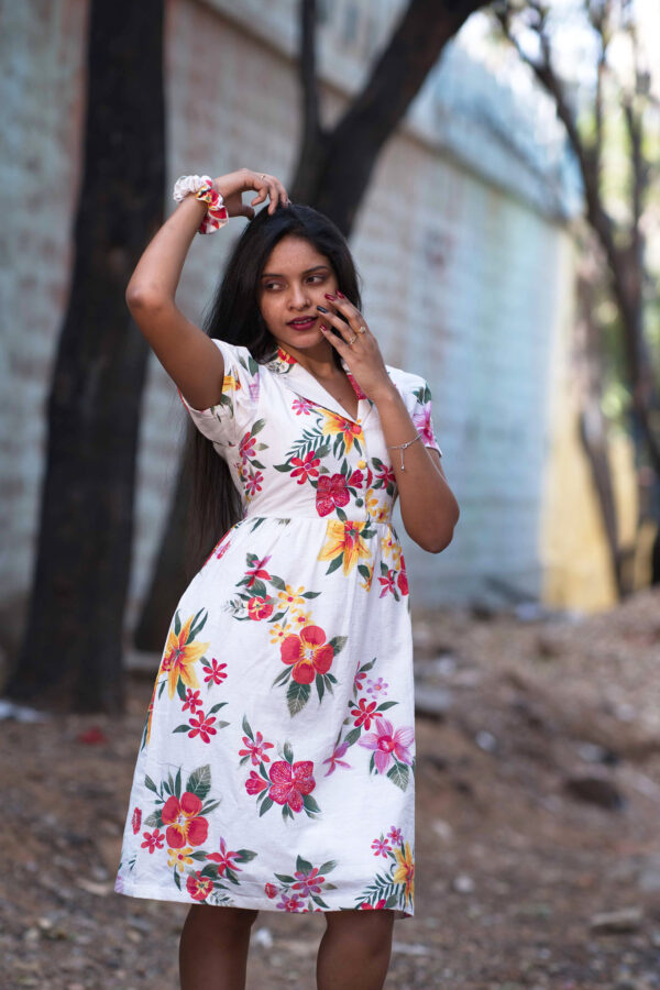 IndieVastralay Knee length White Floral Dress