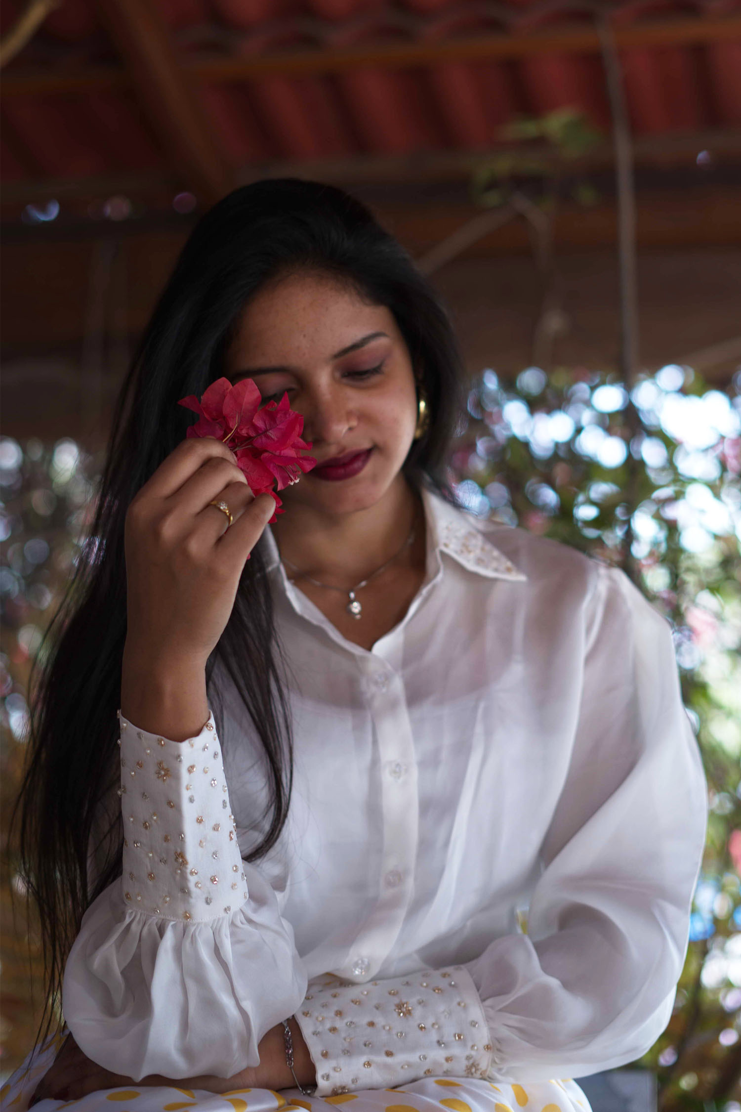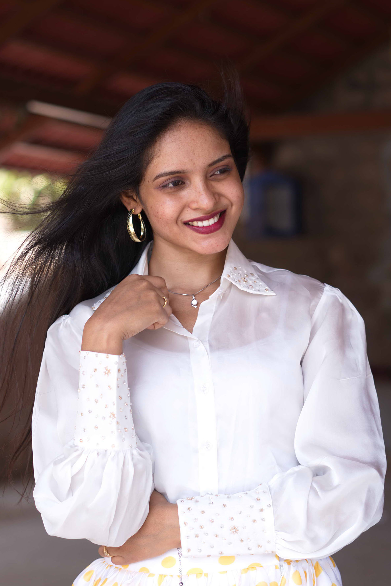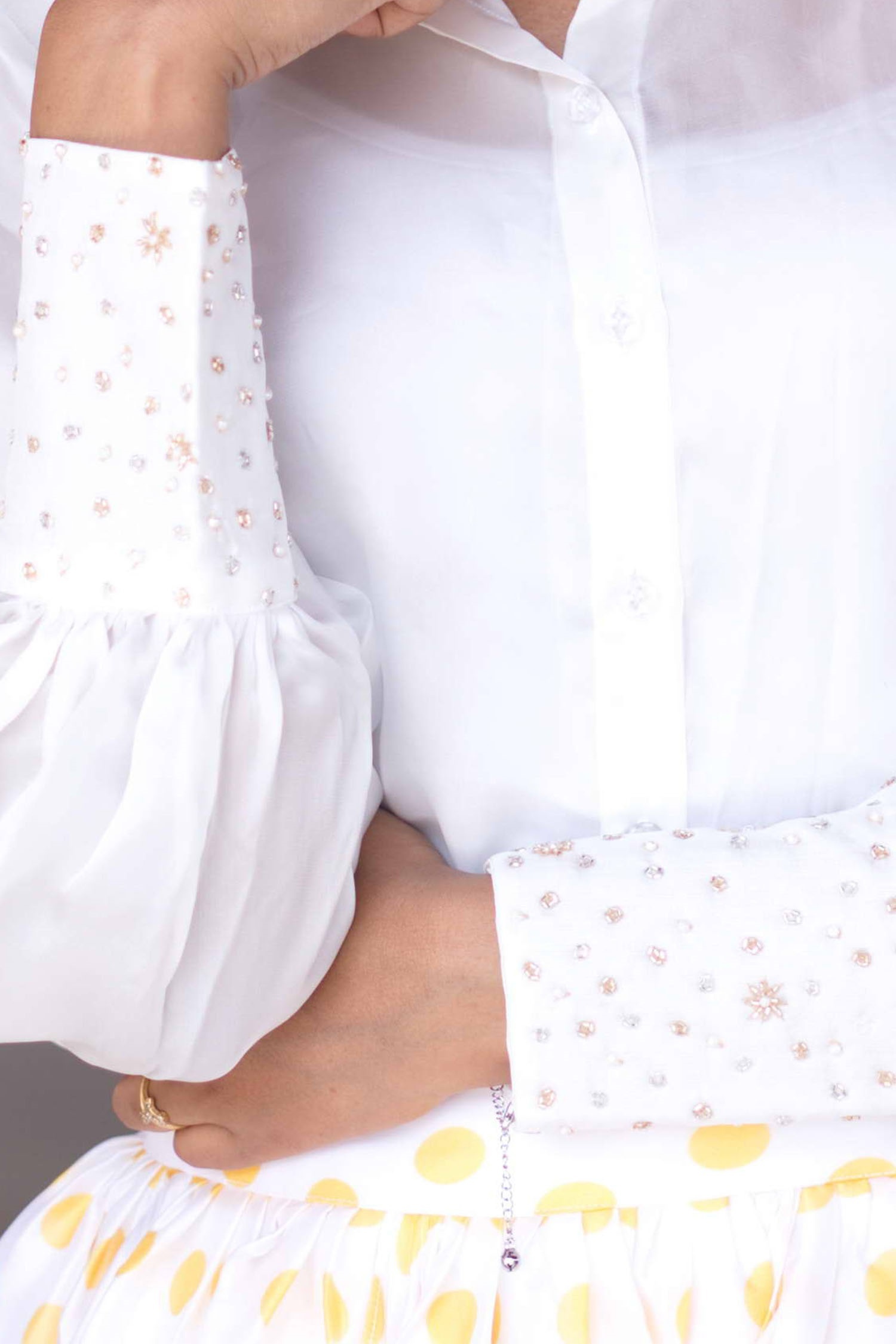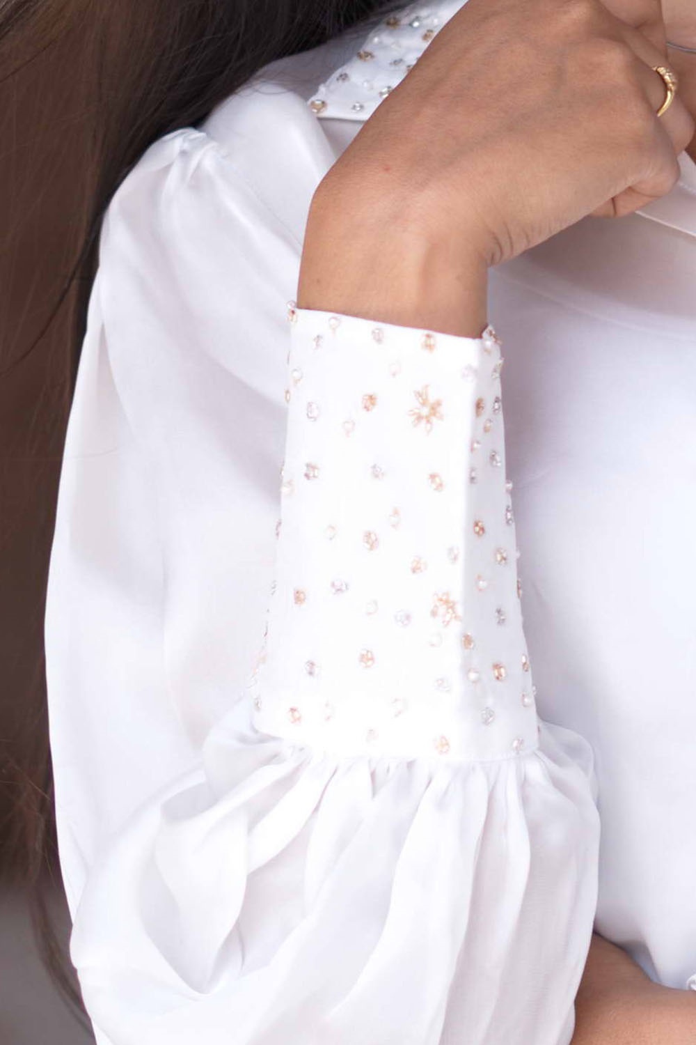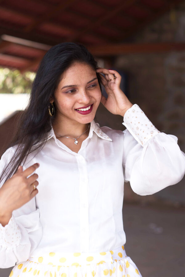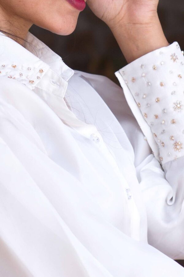 IndieVastralay White Designer Embroidered Shirt