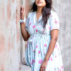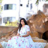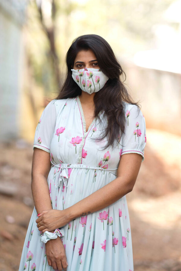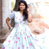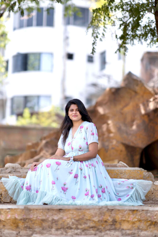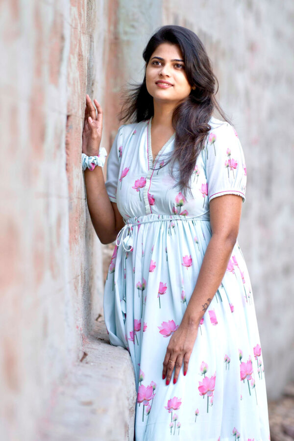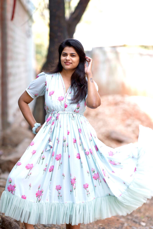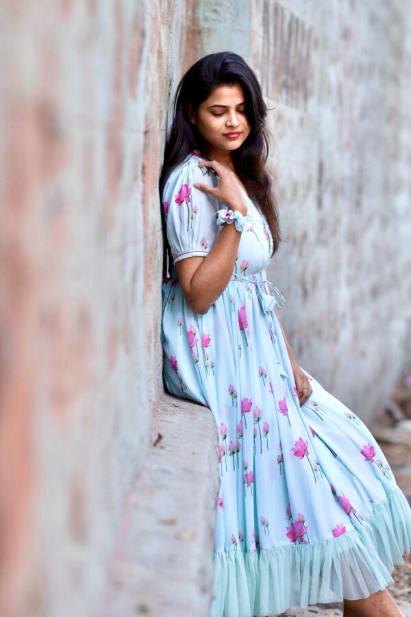 IndieVastralay Midi Sky Blue Lotus Flowers Pattern Dress